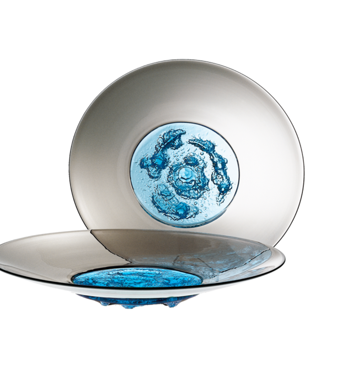 Tapio Wirkkala rende omaggio ai paesaggi a lui cari: con la tecnica dell’incalmo trasforma il vetro in ghiaccio e acqua, dandogli le forme della memoria, dei momenti, della natura finlandese.